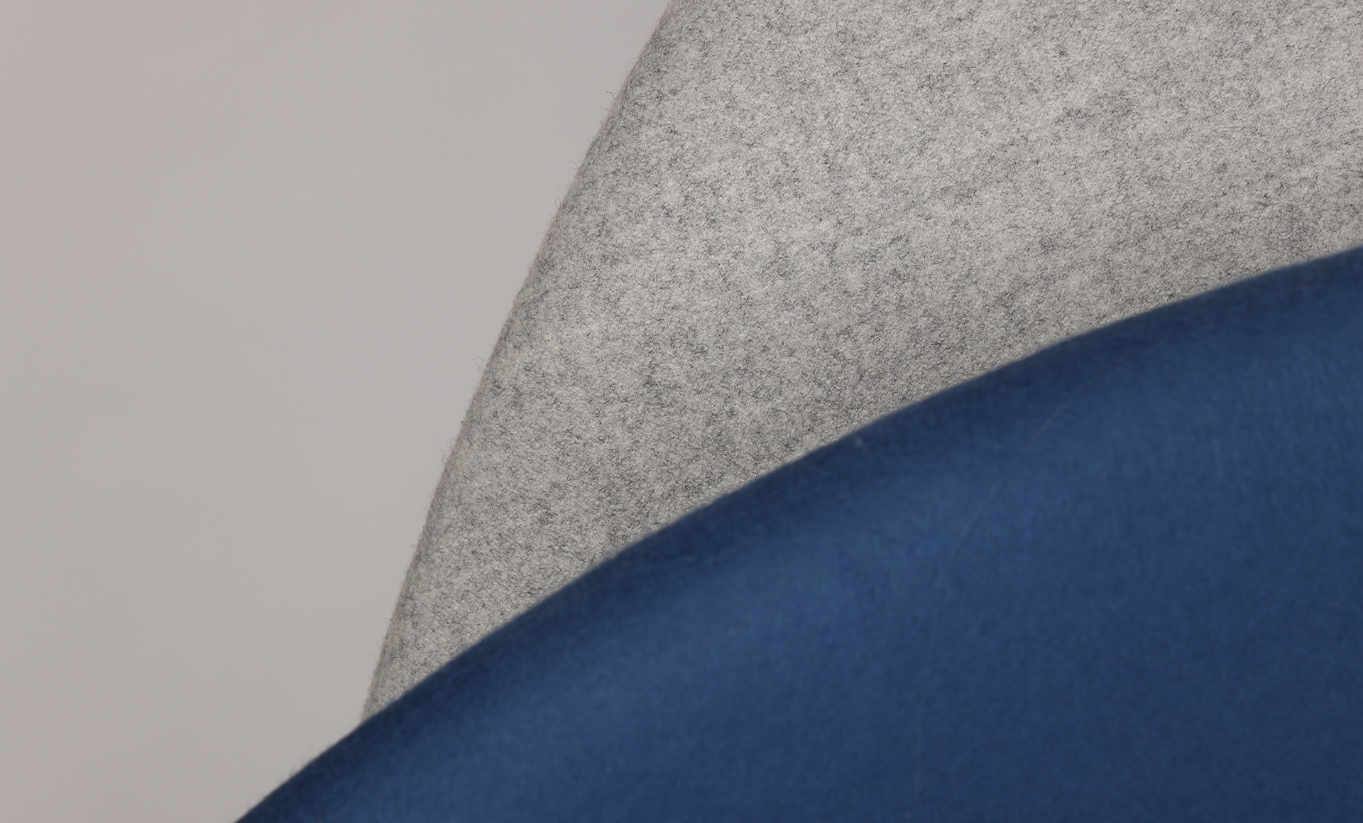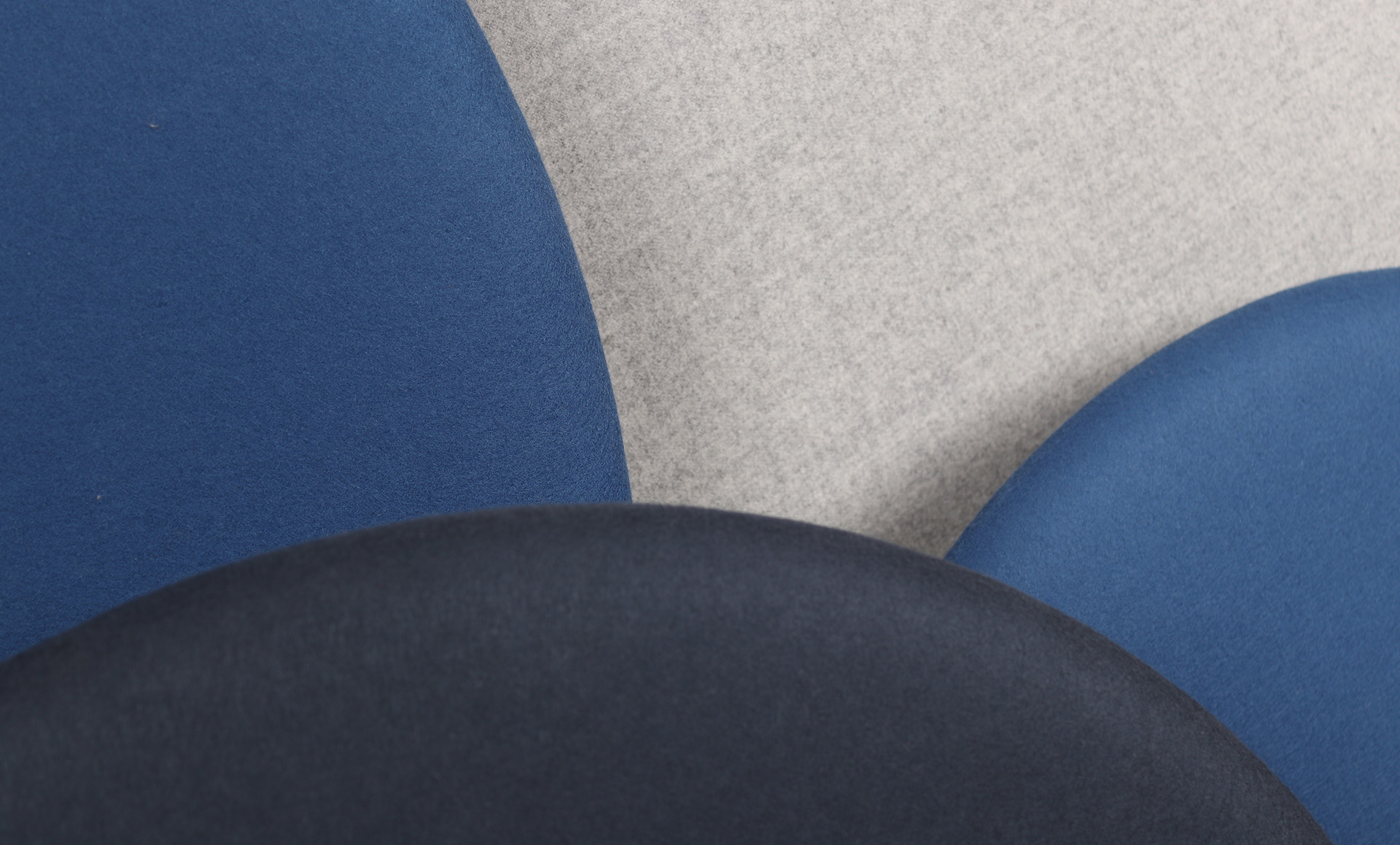 Featuring three sizes of 800mm, 1200mm (Upholstered in Gabriel Soul – blue fabric) and 1600mm (upholstered in Kvadrat Canvas 2, 124 – light grey fabric) diameter, Pillow Round panels are upholstered in acousitic fabrics.