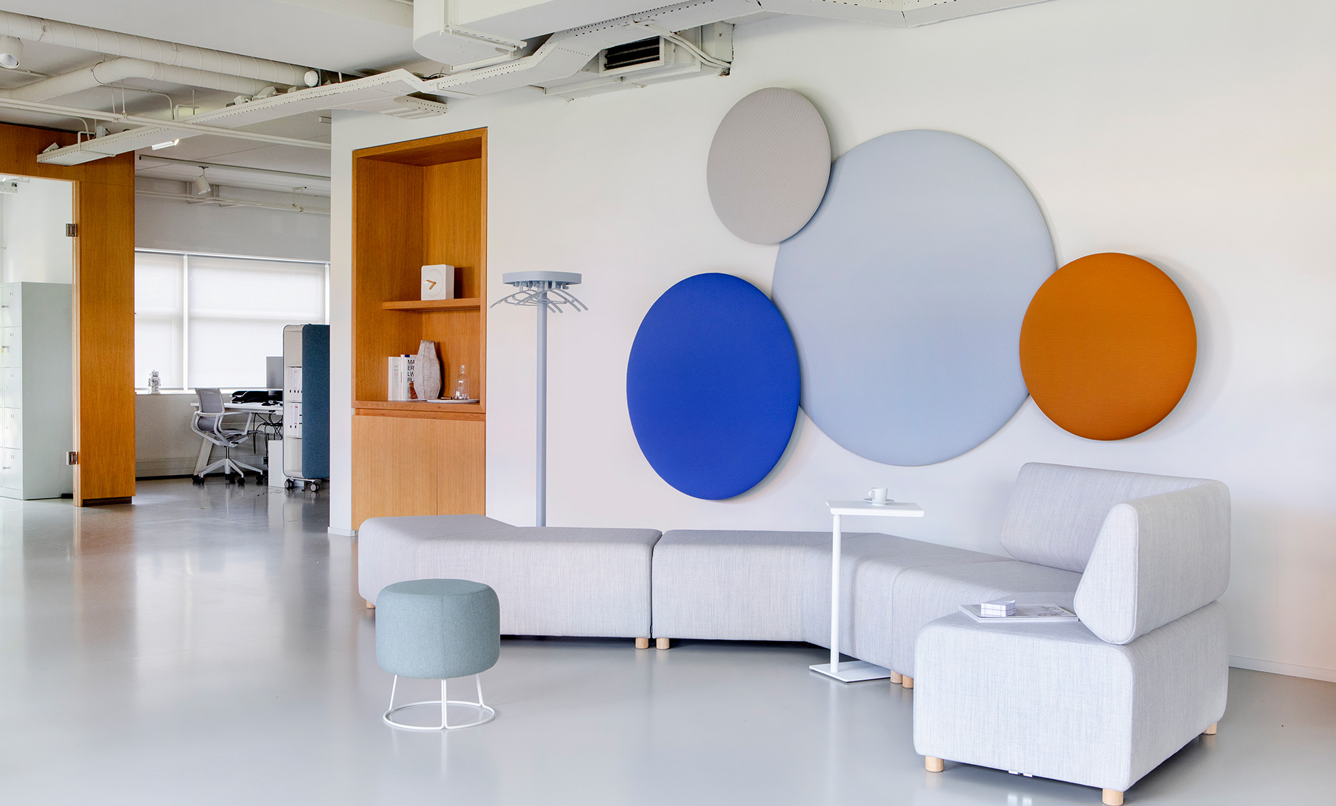 With an intelligent integration of design, functionality and acoustics, Pillow Round wall panels by Cascando are suitable for the office, public spaces or hospitality areas.