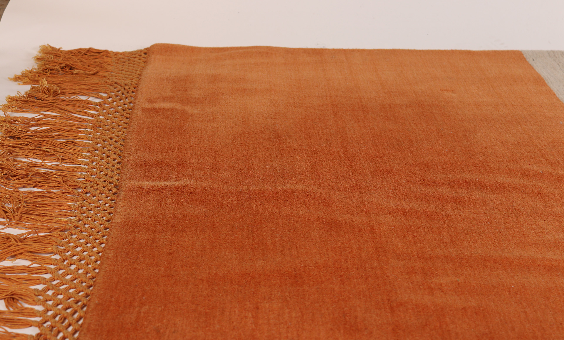 With its understated elegance, Campo features a large, natural-toned field accented by coloured fringe detailing in Orange bringing a subtle yet distinctive character to interior spaces. The rug?s tactile surface and simple design make it ideal for living areas, offices, or commercial lounges.