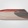 The unique arched shape and contrasting linear patterns are a reflection of the furniture range. Handcrafted in India utilising natural fibres including New Zealand Wool.