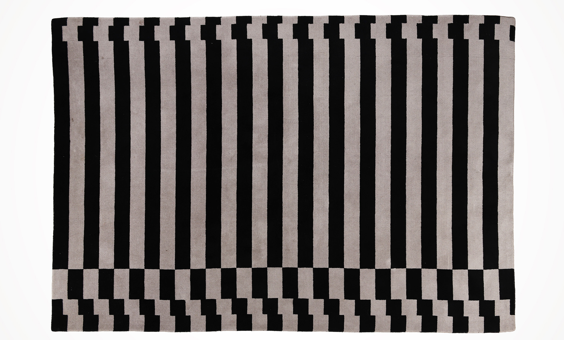 Tacchini Linea Rug by Maria Gabriella Zecca was designed through subtracting and removing, until a perfect synthesis of parallel lines is reached, breaking up to create a three-dimensional feel by combining two colours: the softness of white combined with contrasting black. Handmade in Nepal by looming in the traditional Handloom technique with 100% Himalayan wool and cotton weave.