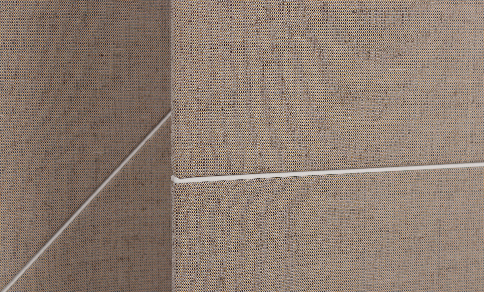 SAMPLE Parentesit square acoustic panel featuring horizontal or diagonal insert in single colour with LED light, Art. 5100, 950mm x 950mm x 70mm, upholstered in a single Group D Canvas 114 fabric with metal profile to V12 white powdercoat. (Installation by others, not included within the price).