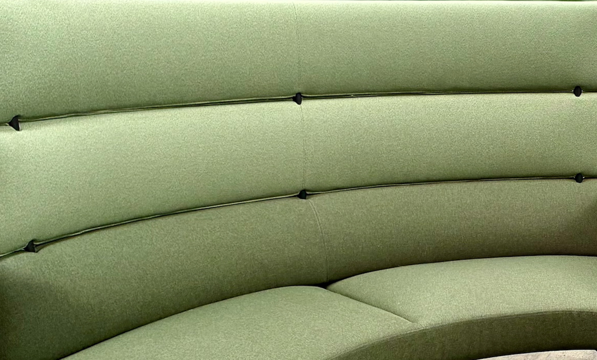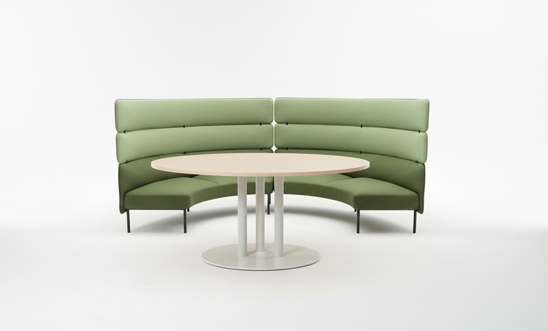Suitable for casual meeting spaces or breakout areas, Adapt by Ross Gardam features Curved 90 degree two-seat lounge module at 1800mm radius with high back screen.