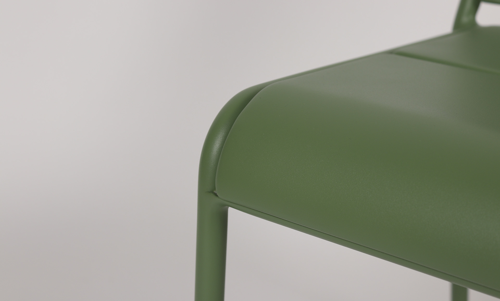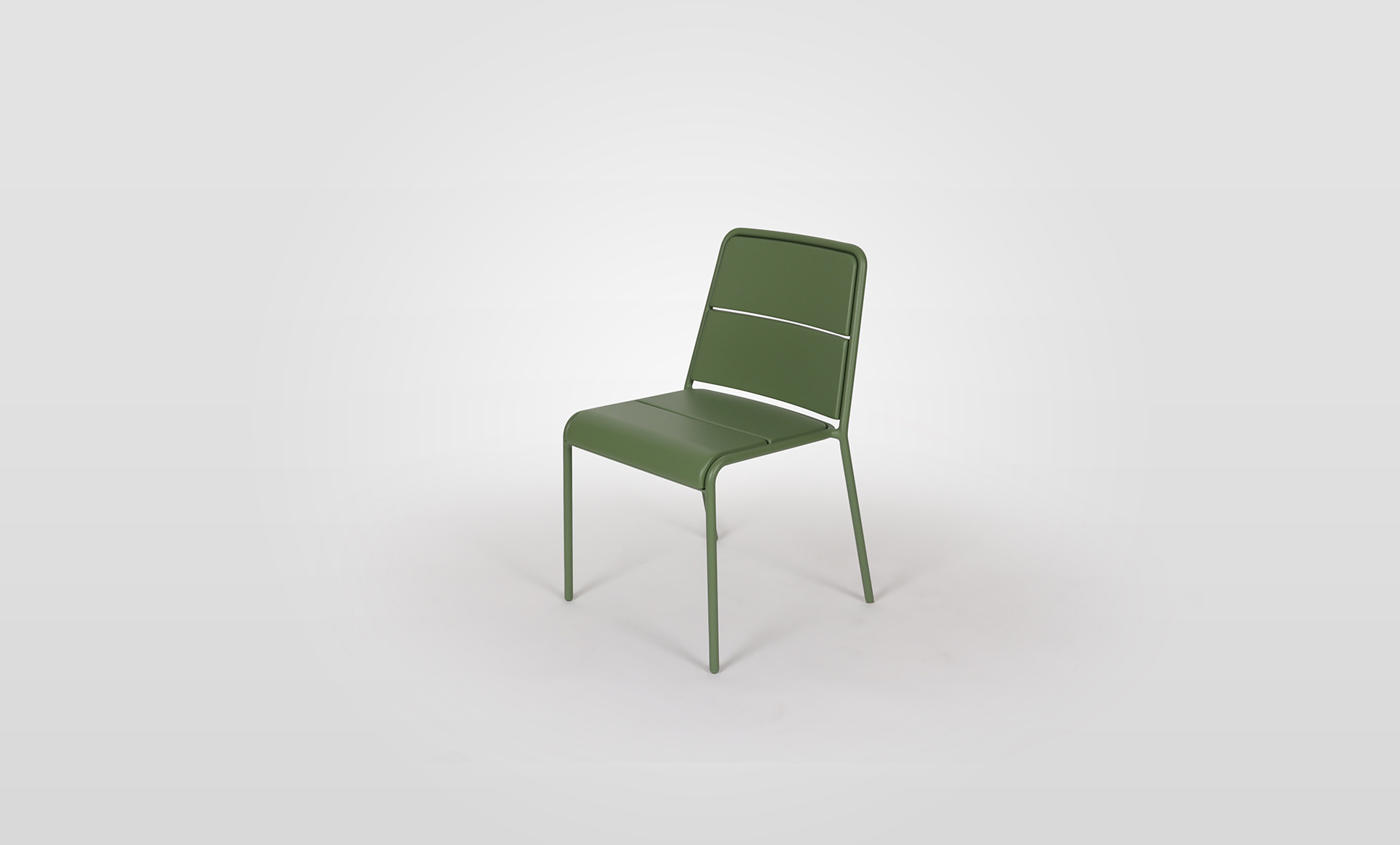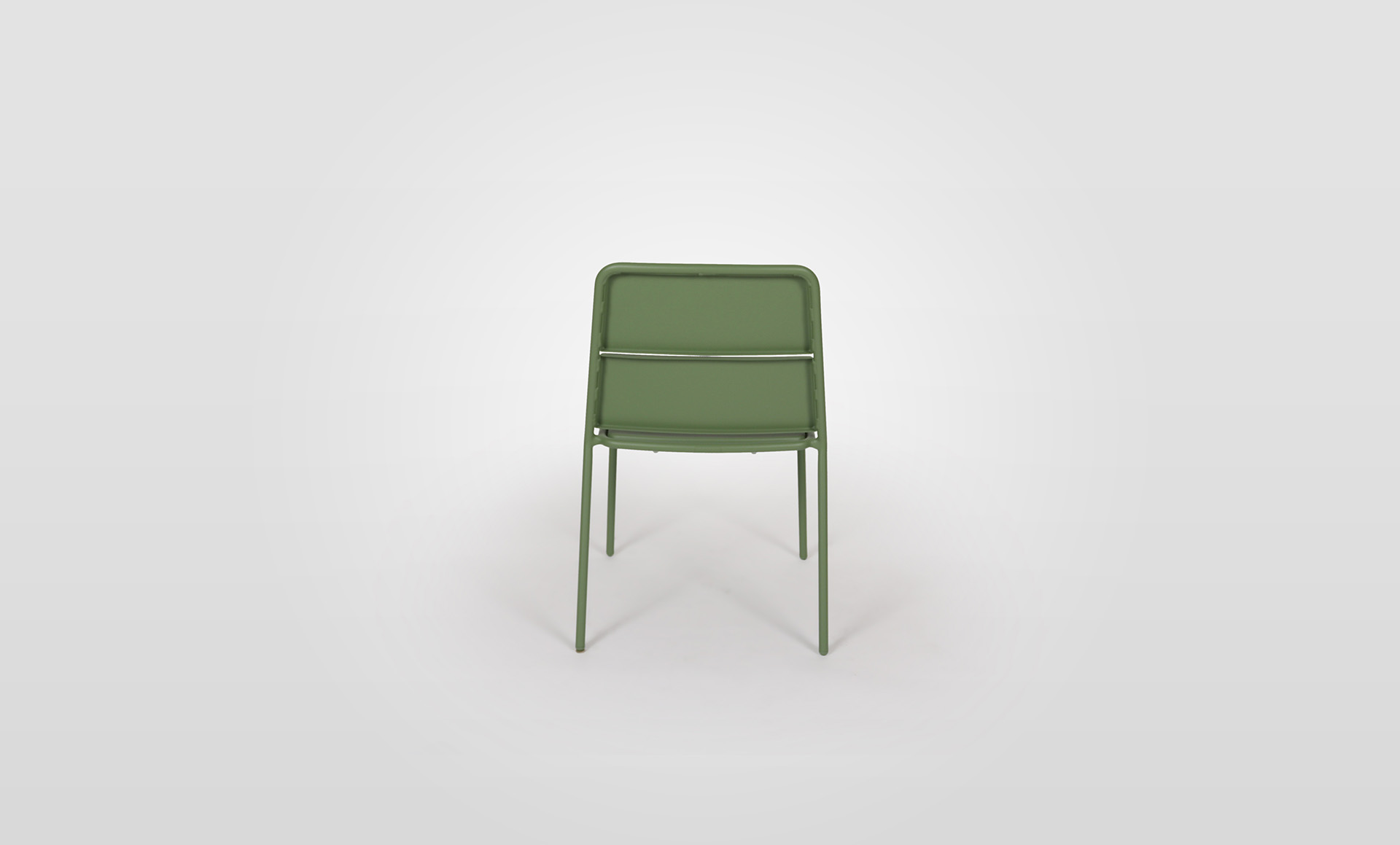 The durable and lightweight chair is constructed from aluminium and the powder coat finish is available in a Green Powdercoat.