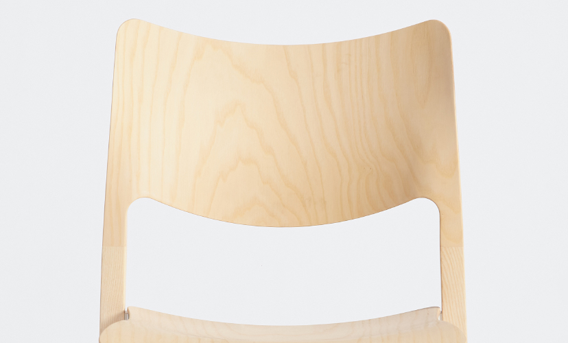 SAMPLE – Laclasica stackable 4 leg chair, with moulded plywood shell on solid Oak timber legs, finished to Natural Ash.