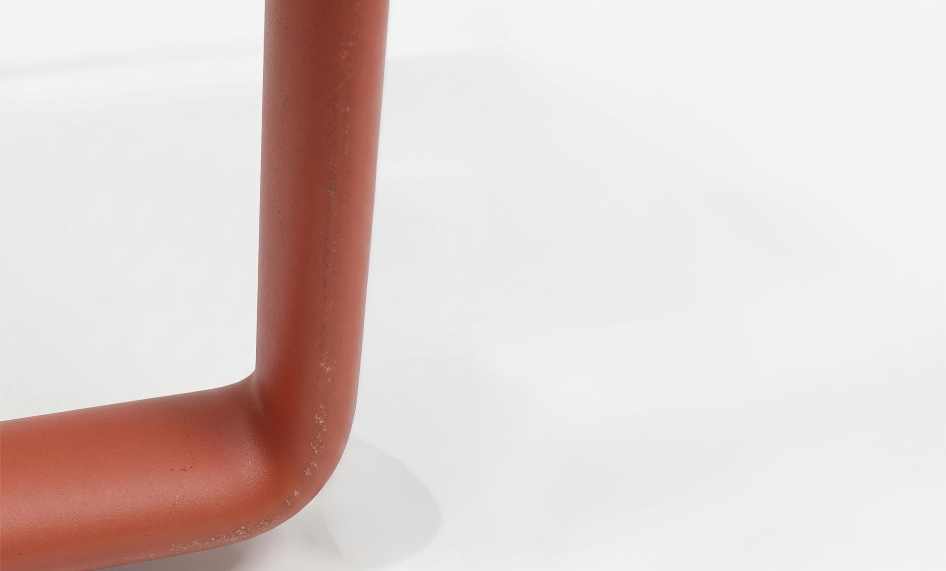 The Arcos two seat sofa is upholstered in Kvadrat Canvas 2 fabric, colour 454/Rust and features integrated armrests on a sled frame, finished in a matt powdercoat, colour V61/Rust.