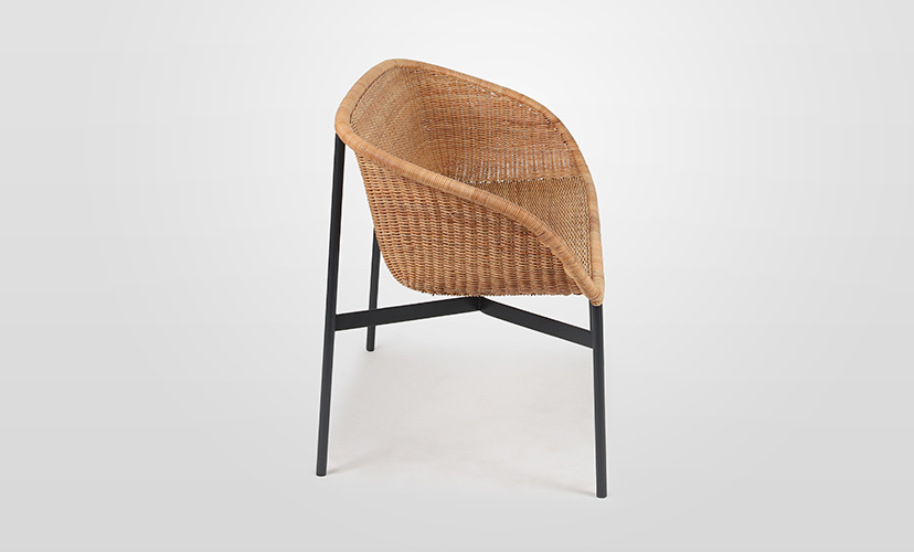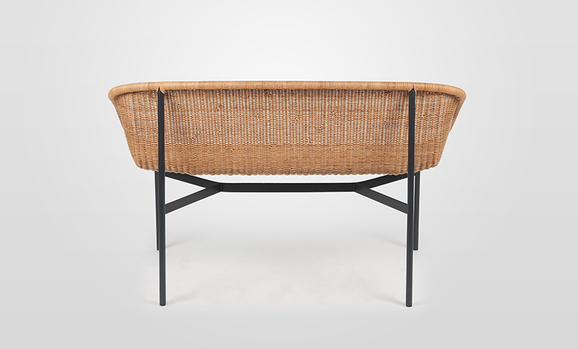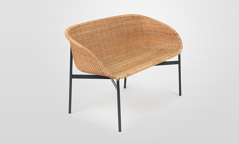The Clara fuses the intimacy and informality of a bench with the practicality and comfort of a dining chair, suitable for residential and hospitality indoor setting. The lounge?s graceful balanced expression is further enhanced by a suspended rattan shell supported by a mild steel frame with slim legs, powder coated to Charcoal.