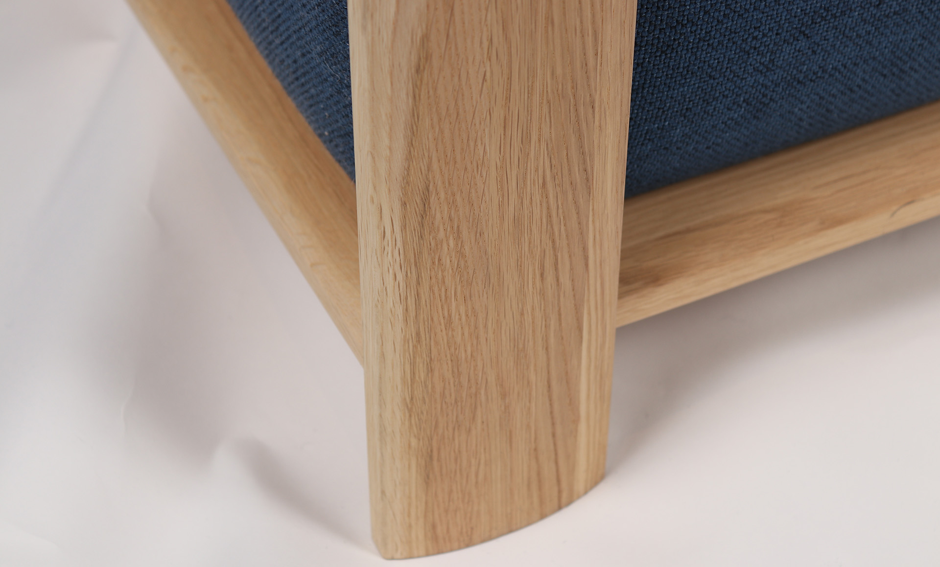 This product is upholstered in Maharam Mode, colour 033 Denim Blue on a natural Oak timber frame.
