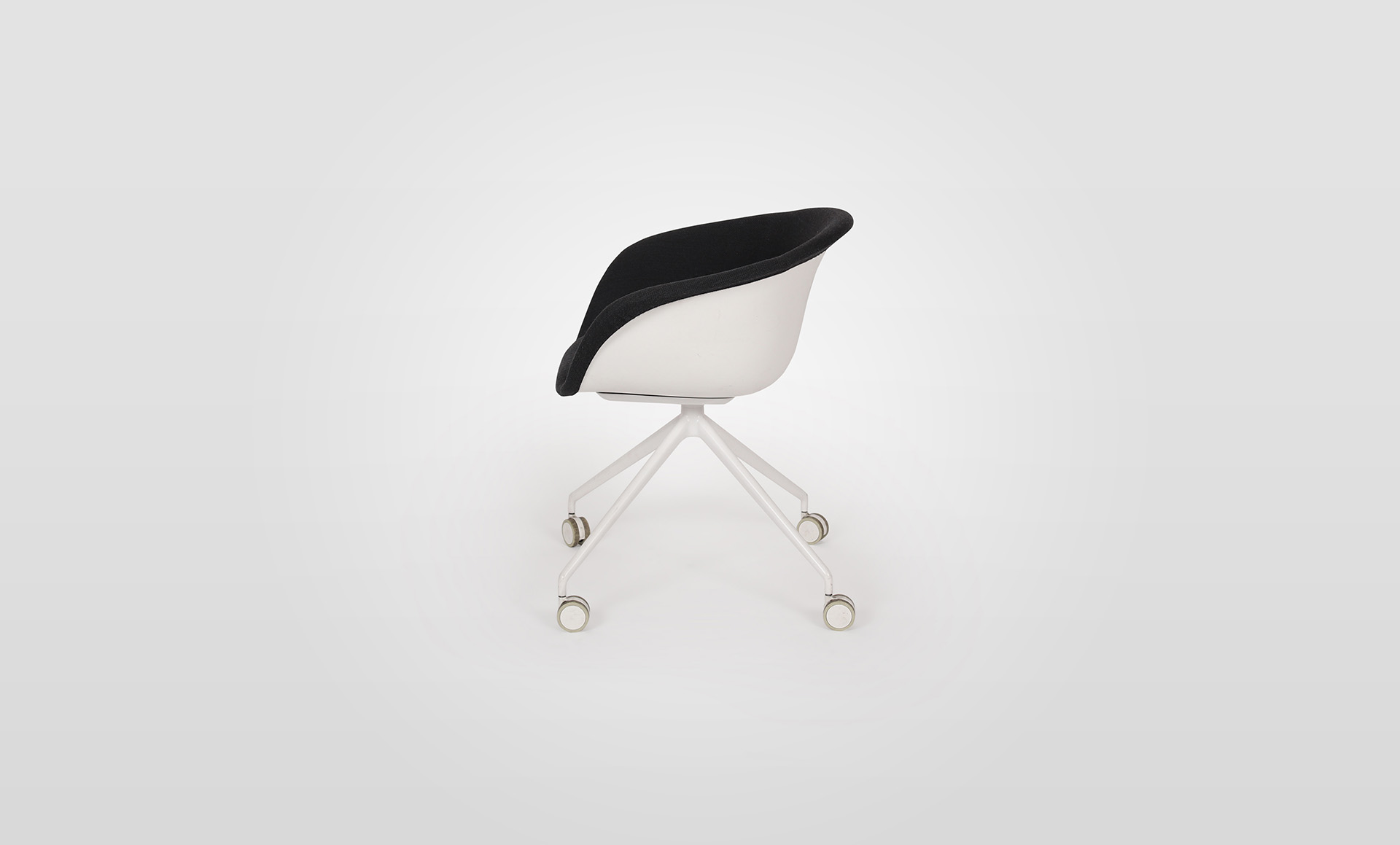 An evocative and contemporary shape suitable for many environments is the Duna 02 4-Way Swivel and Castor by Arper. The evolution of Duna 02 allows for a thinner and sleeker profile with the polypropylene shell and front upholstery in an Arper house fabric. The 4 way swivel or castor base is fabricated in aluminium.