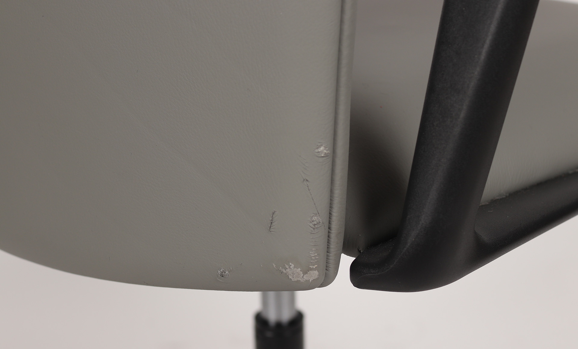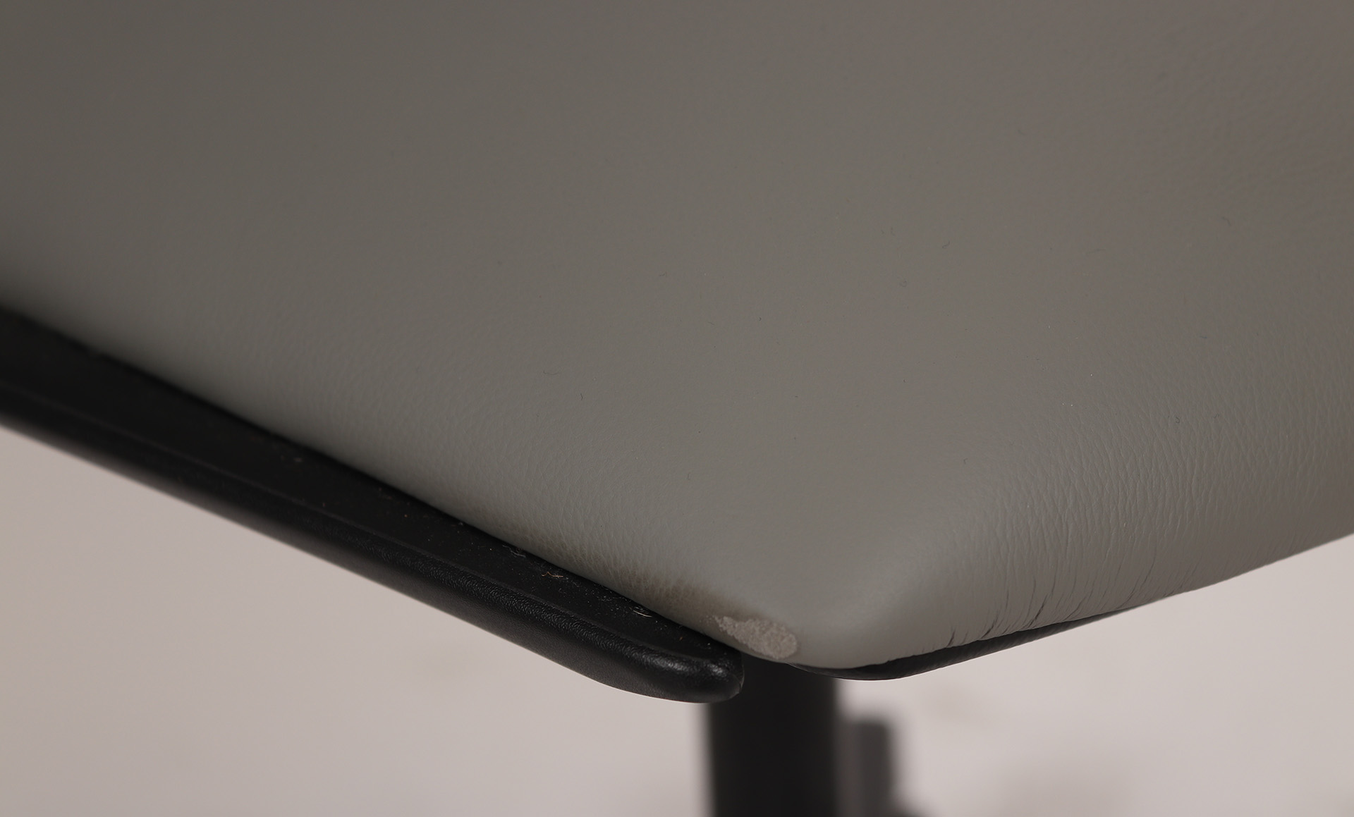 This item is ex-showroom display and some chairs are showing signs of use including some scratches and marks to the light coloured leather and scuffs on the nylon base.