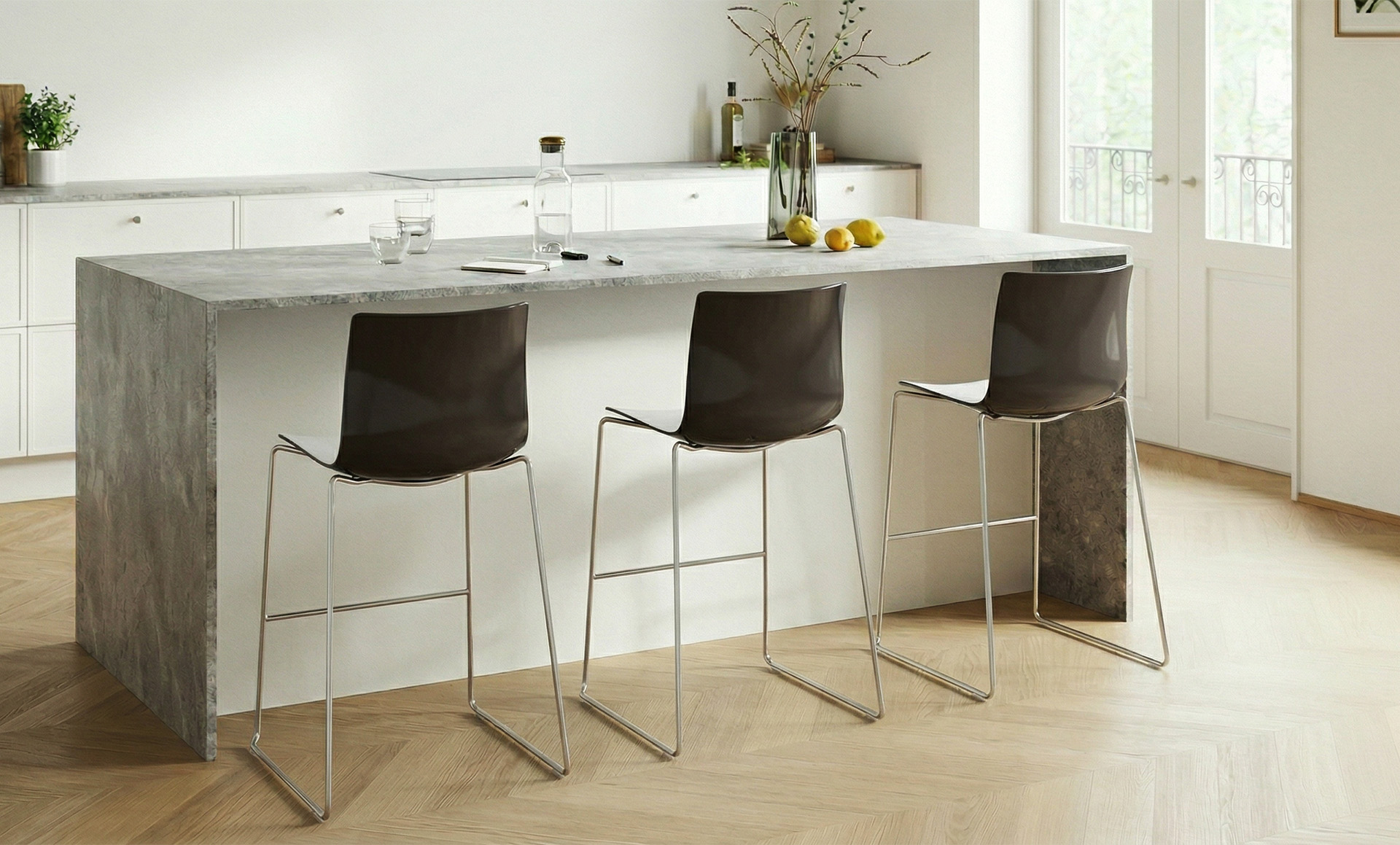 This Catifa Barstool features a bi-colour polypropylene shell to White/Brown PP0204, on a sled base frame finished to chrome. The seat height of 760mm is best suited to counter heights of 1000 - 1150mm.