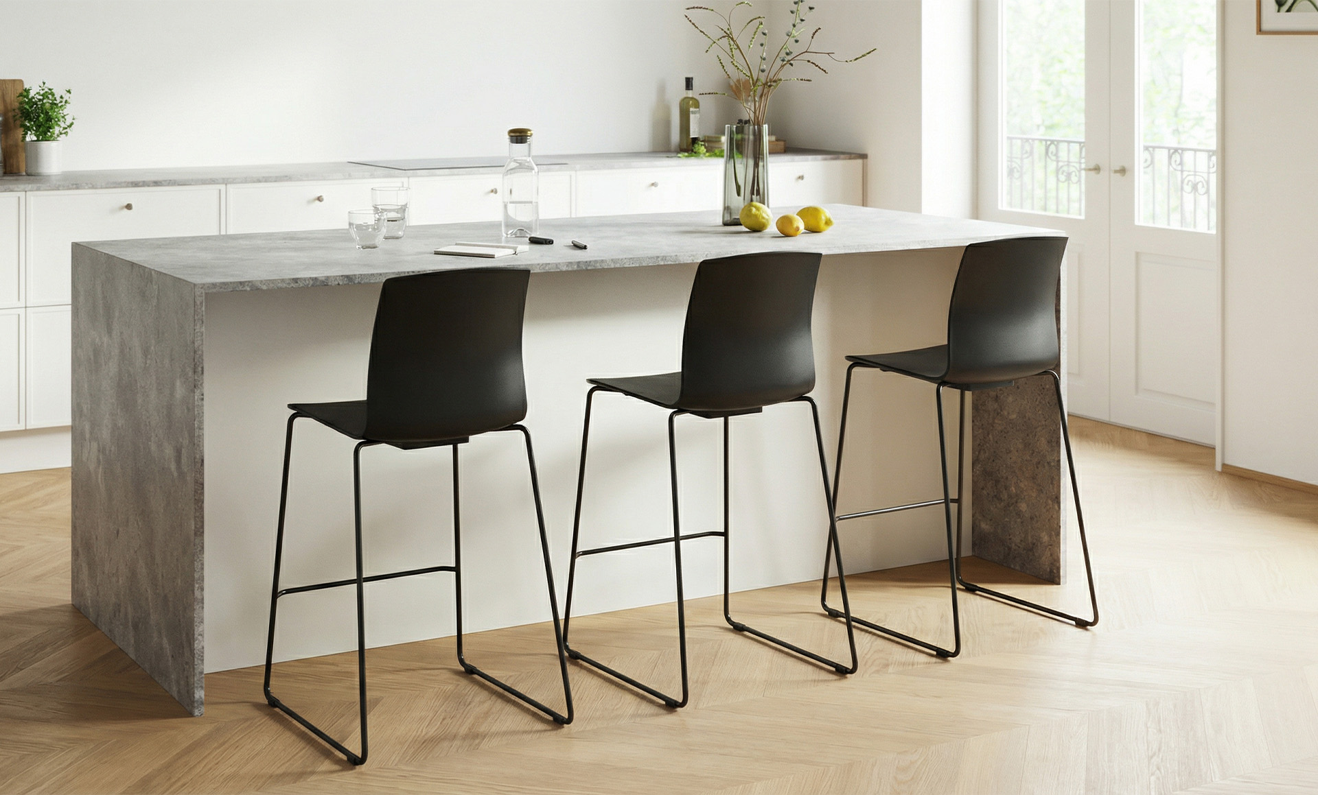The Kabi counter height chair is a versatile and elegant seating solution for any space, whether it’s a commercial, hospitality or residential setting. Designed by Jorge Pensi, one of the most renowned Spanish designers, the Kabi chair combines simplicity, comfort and durability. The Kabi counter stool features a sled mild steel base with a powder coat finish and a polypropylene shell that is stackable by 10 units. The shell has a subtly flexible back that adapts to the user’s posture.