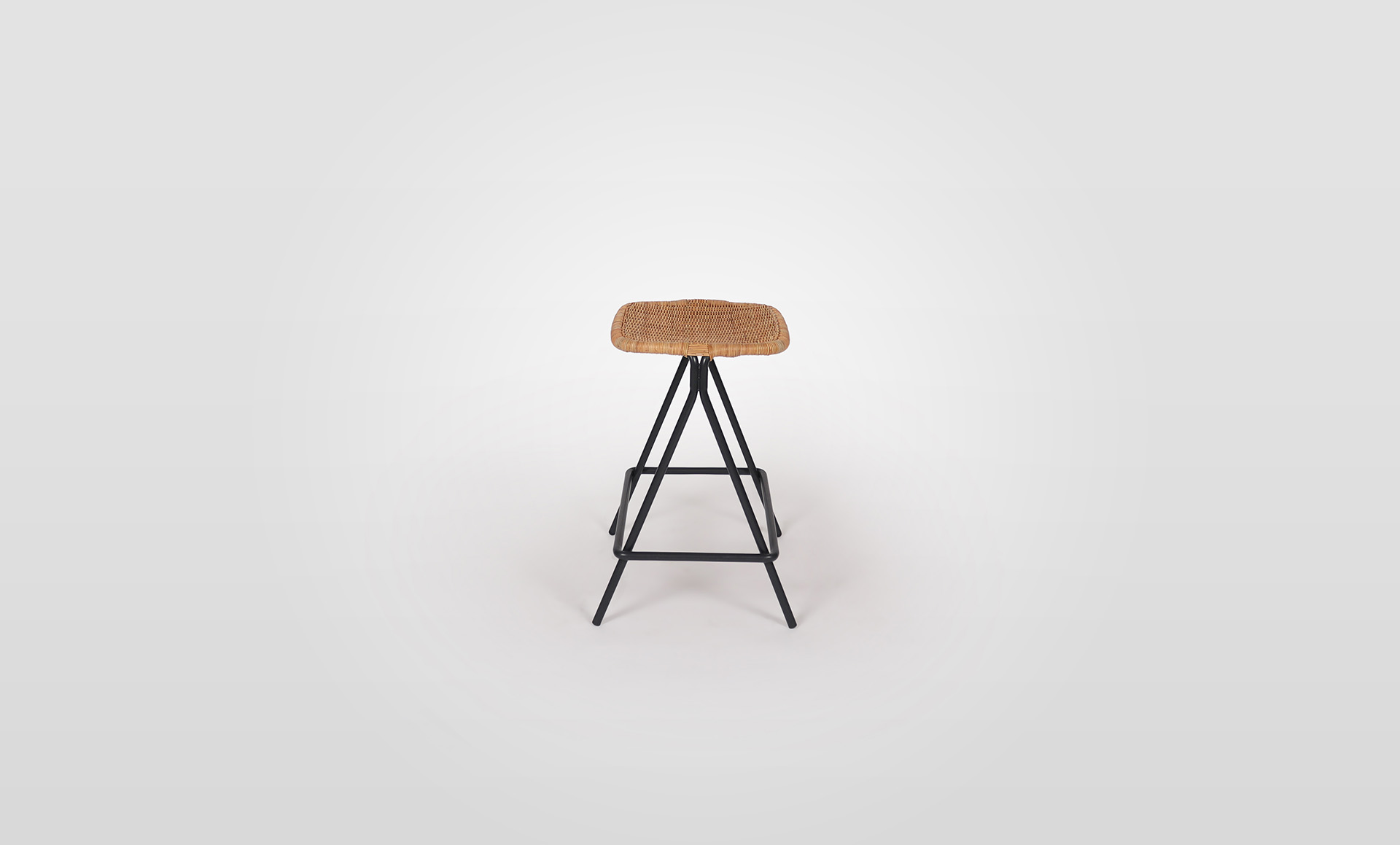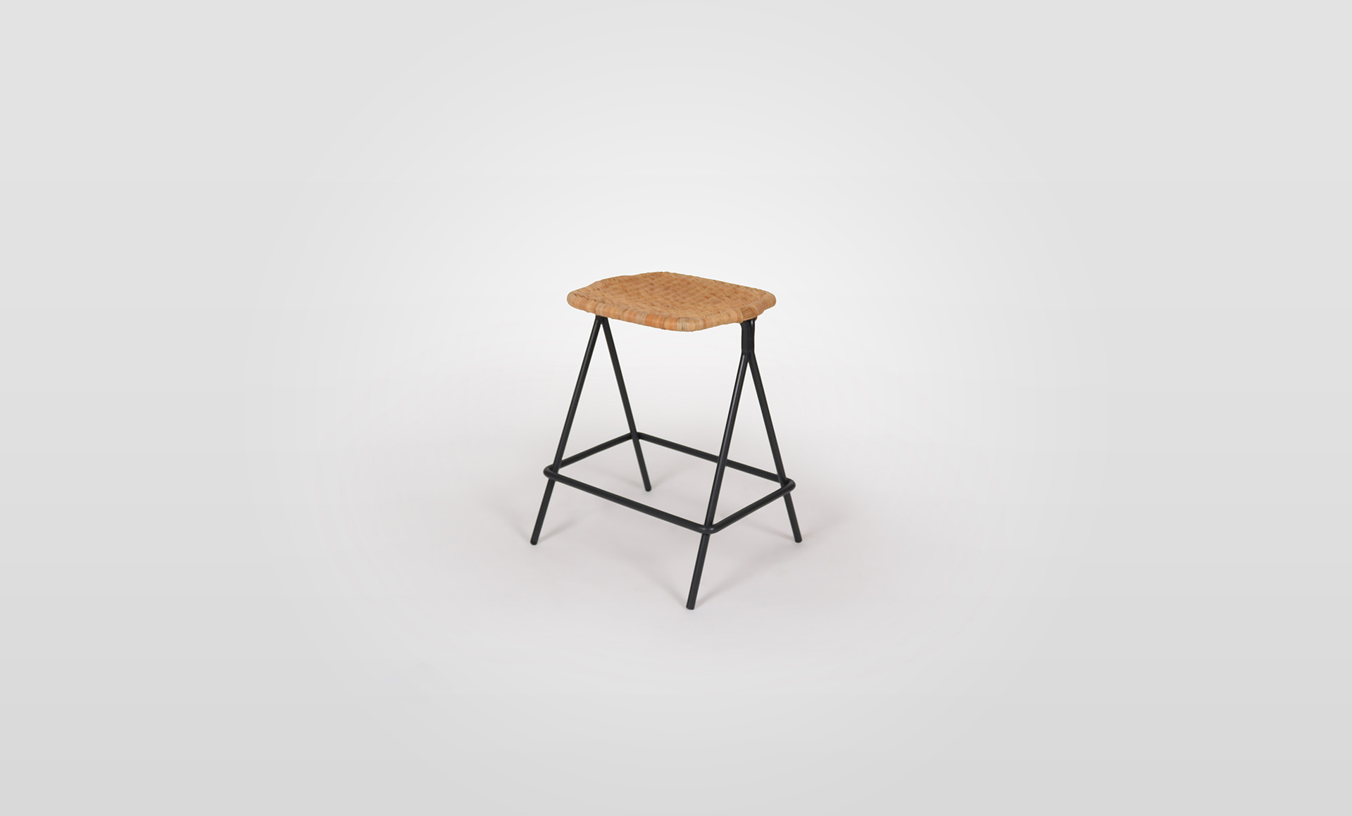 Without a backrest, this indoor version of the Kaki barstool features a woven shell in rattan finished to Natural on a 4-leg mild steel base finished to charcoal.