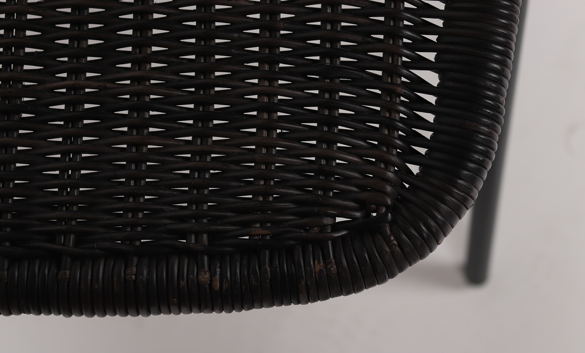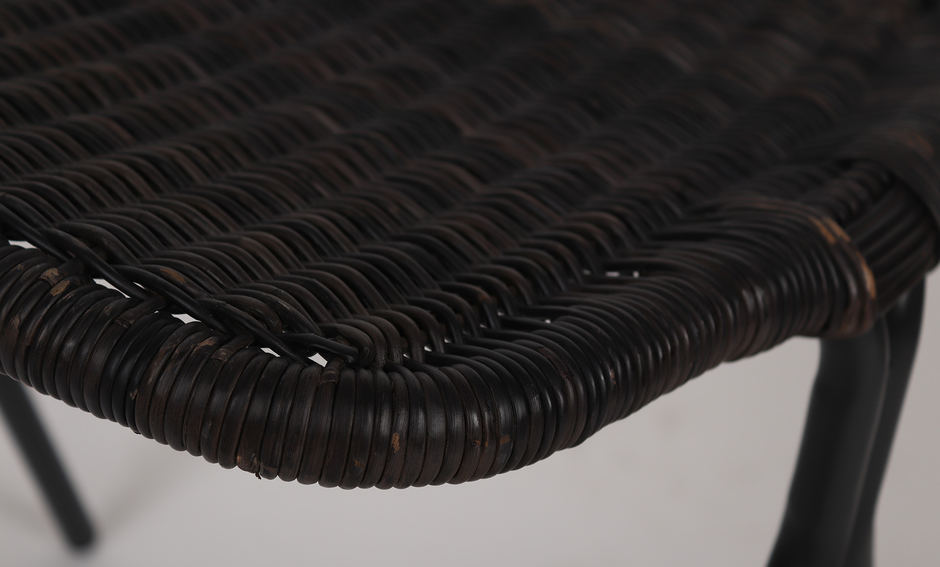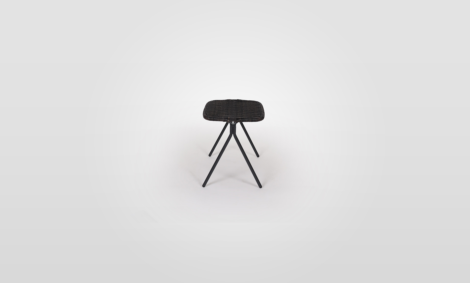 For indoor environments, the Kaki low stool features a woven rattan seat finished to Graphite on a 4-leg mild steel base finished to charcoal powdercoat.