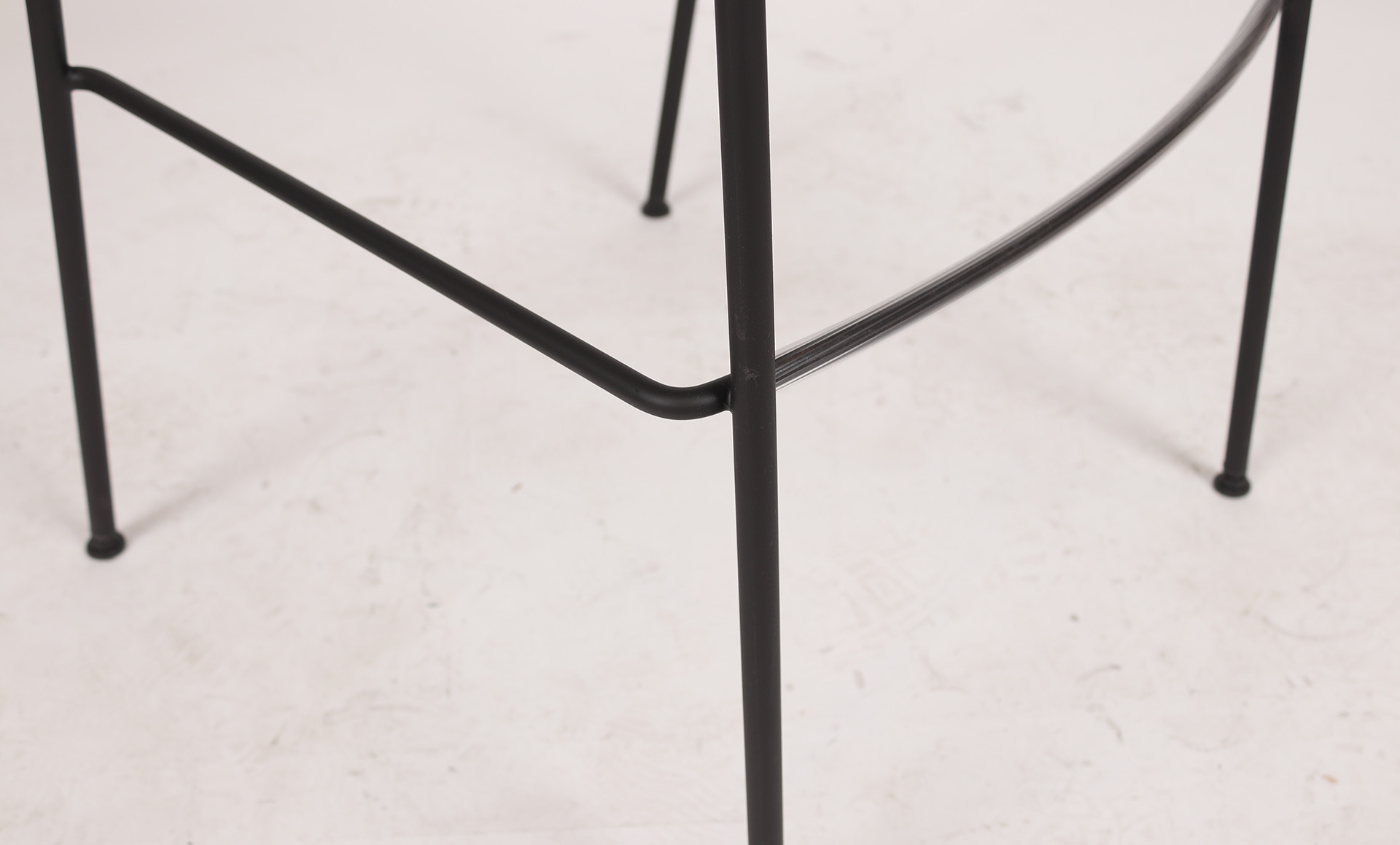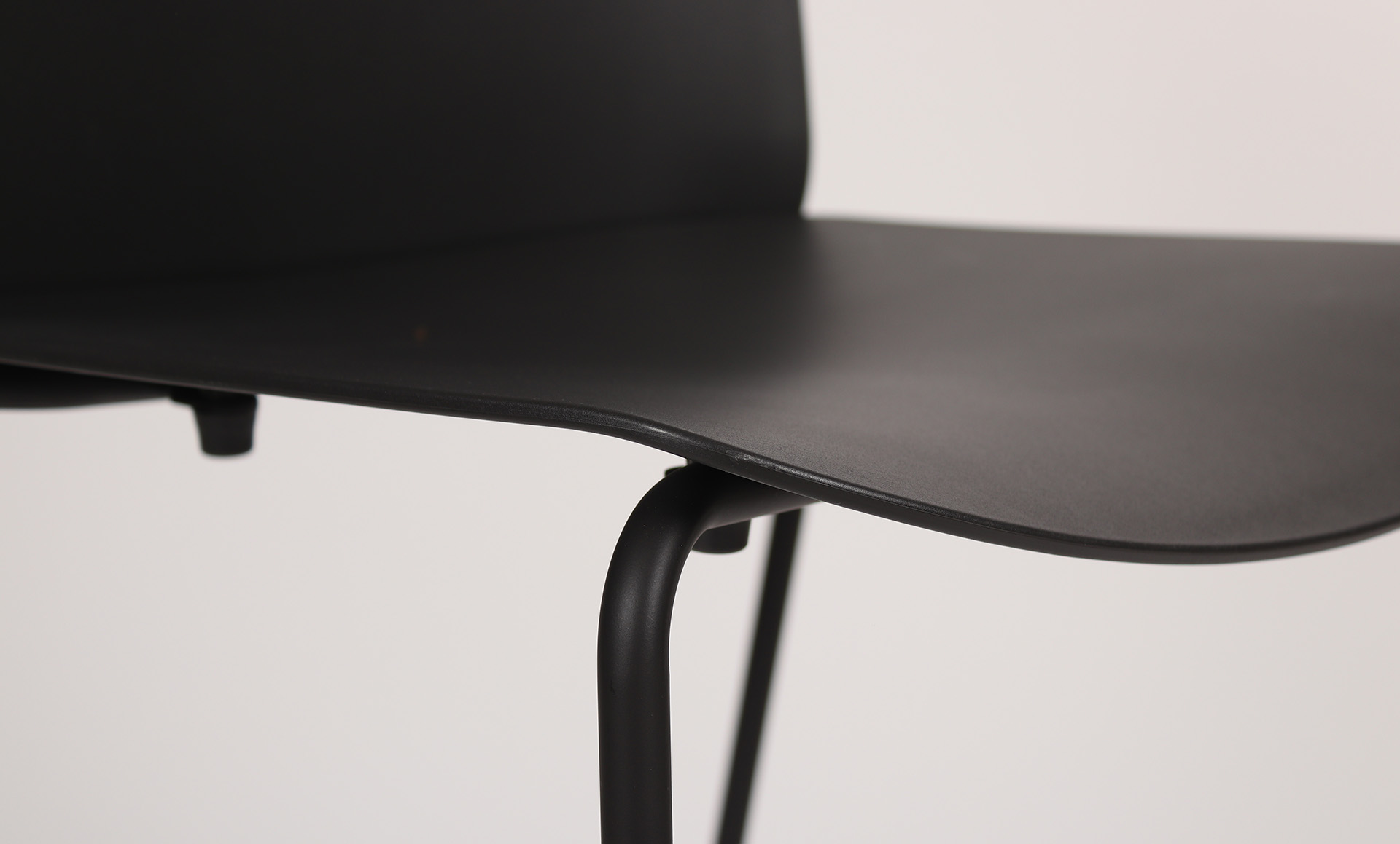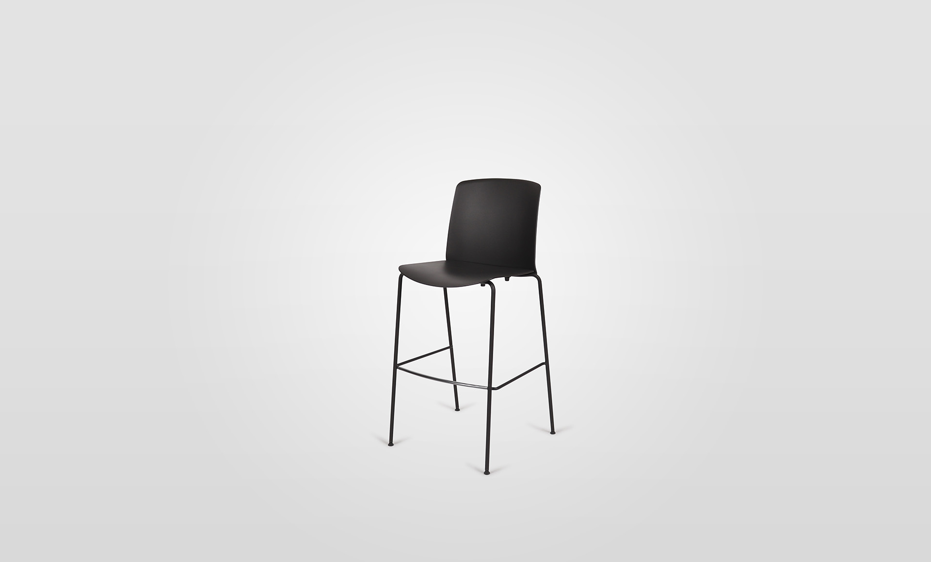 This stool features a black polypropylene seat and back on a 4 leg steel frame finished to V25 Black powder coat.