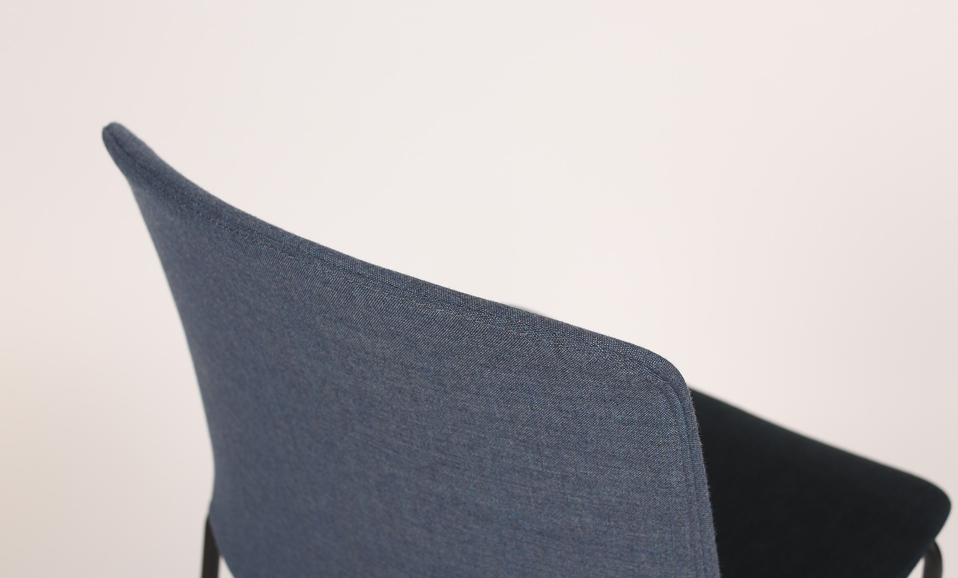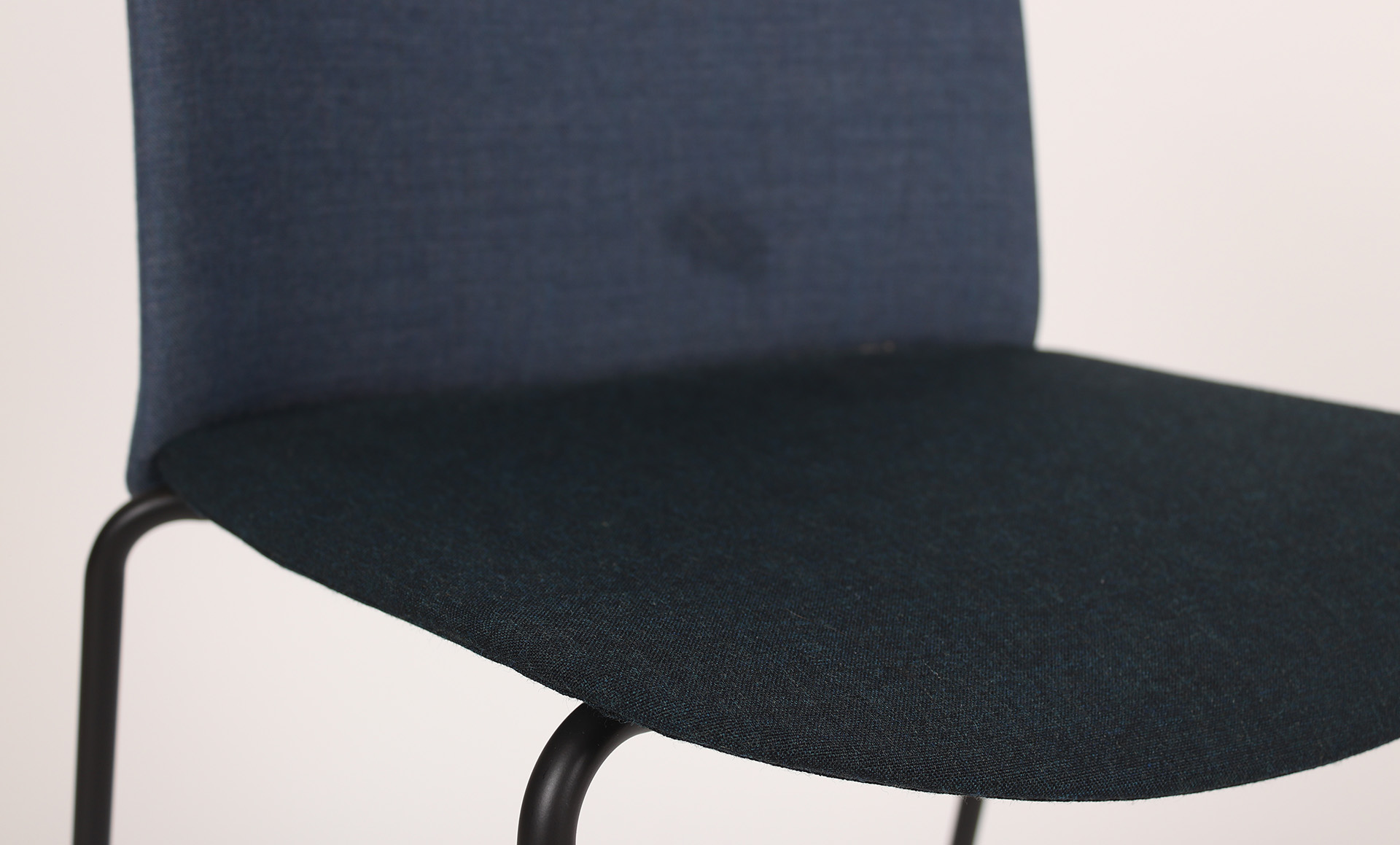 This stool features 2 tone upholstery with backrest in Blue fabric and seat in Dark Blue fabric, on a 4 leg steel frame finished to V25 Black powdercoat.