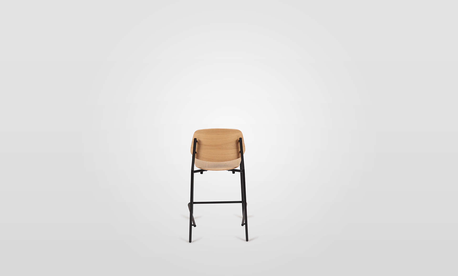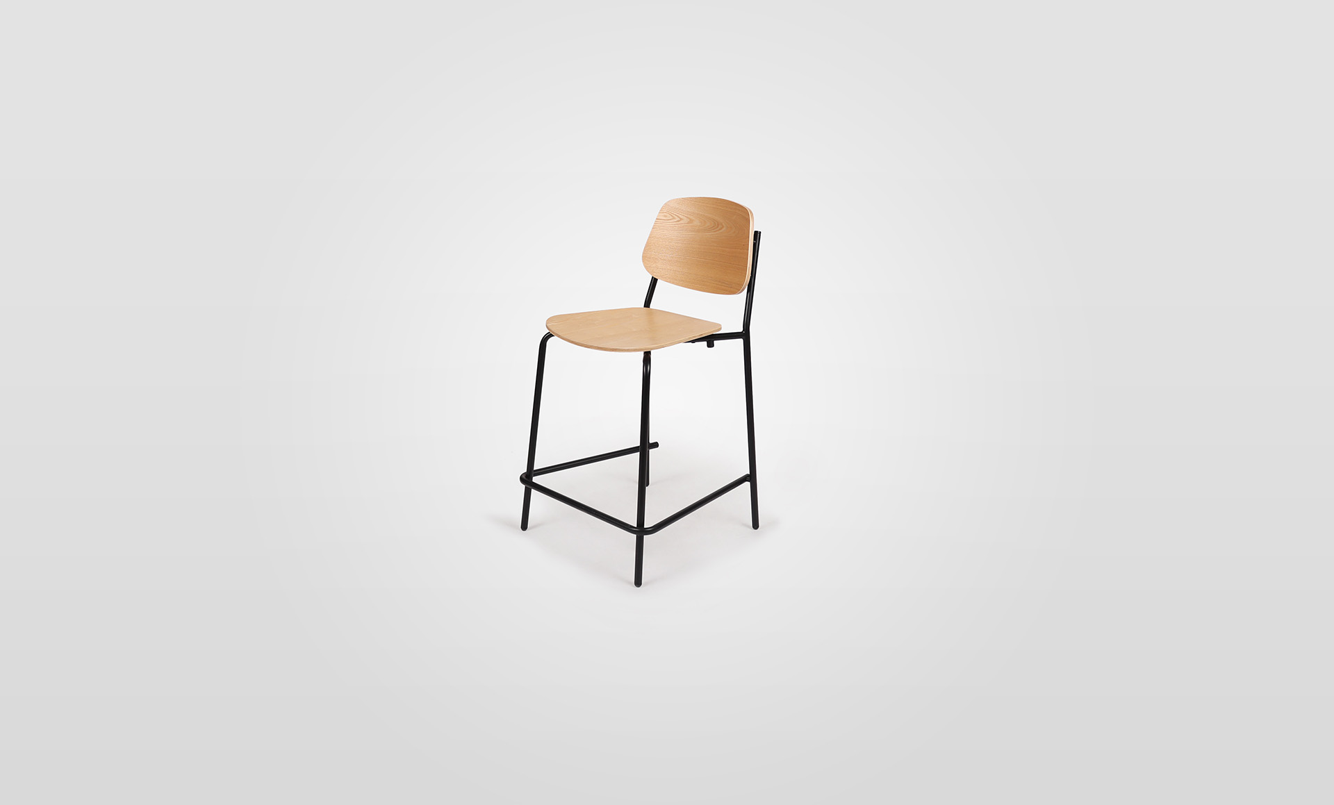 SAMPLE Platform counter stool with moulded plywood seat and back in natural, Art BS6400-CA, 500mm x 540mm x 885mm, seat height 590mm, featuring seat and back in timber veneer in natural, on a 4 leg powdercoat frame finished to black.