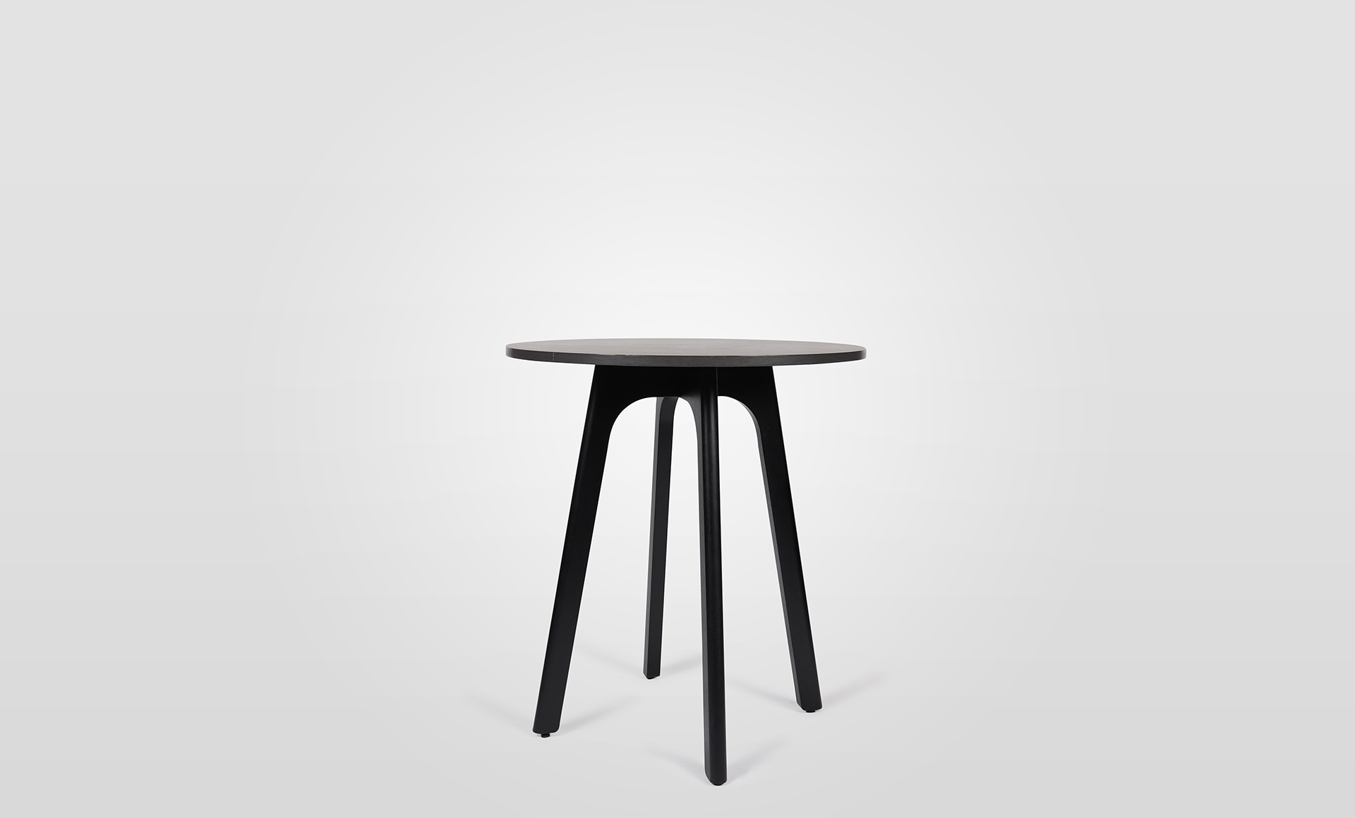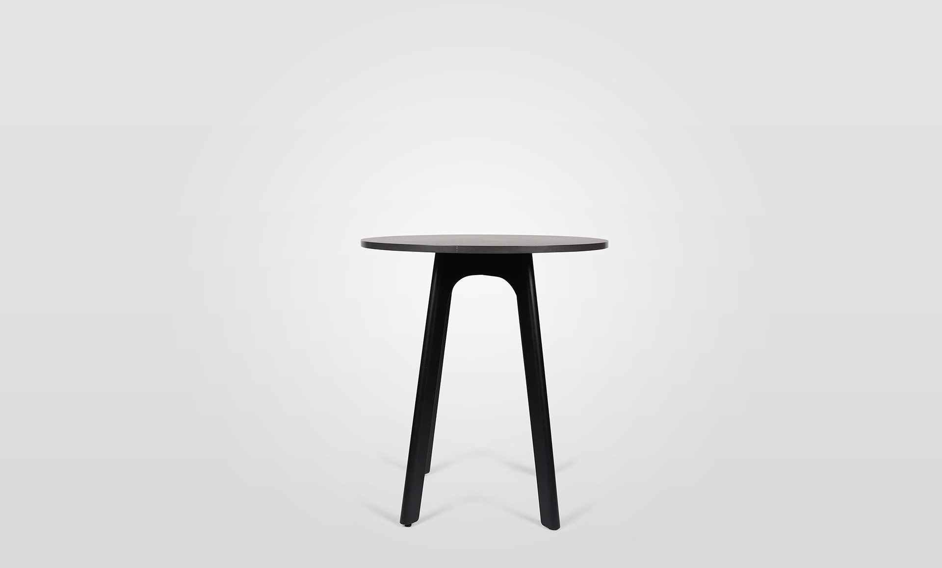 Thinking Quietly bar table is a versatile table designed for functional use in work, home or hospitality settings. Featuring a circular laminate table top on a timber 4-leg base.