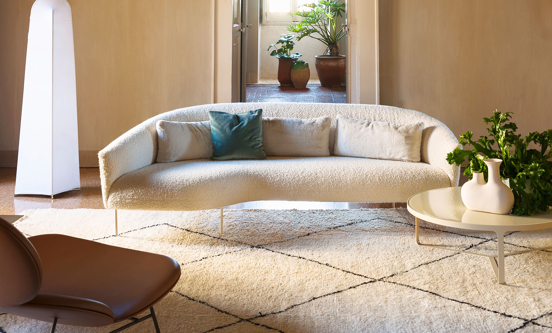 Minimalism and elegance characterise the Cage coffee table collection from Tacchini. Featuring inlaid rear-painted glass top to Light Ivory, on a steel table base finished to Light Ivory.