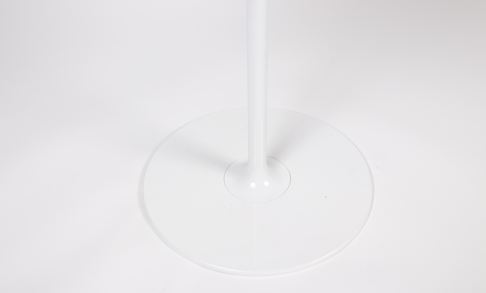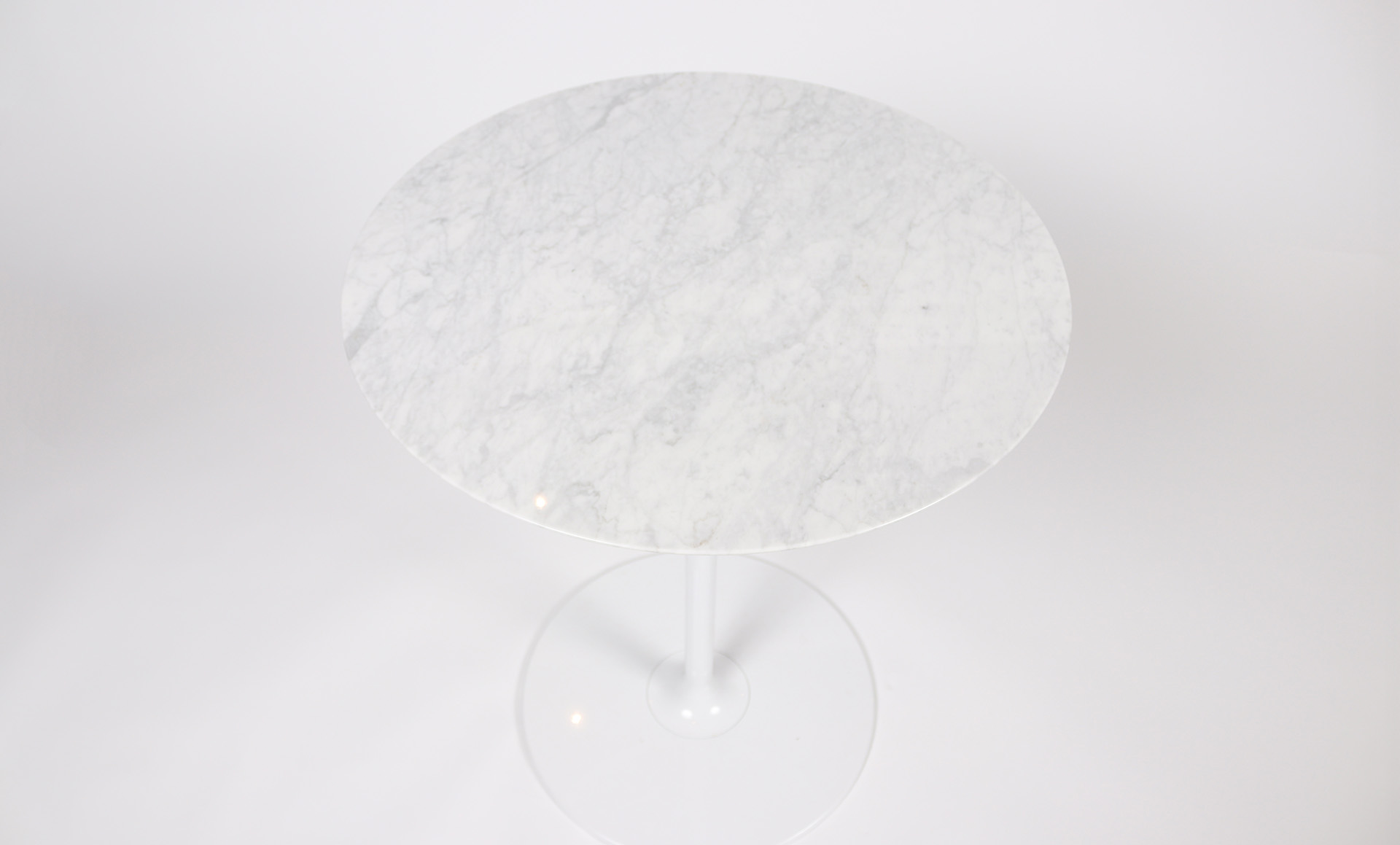 This Dizzie table features a white Italian marble table top on a sculptured mild steel base finished to gloss white powdercoat.