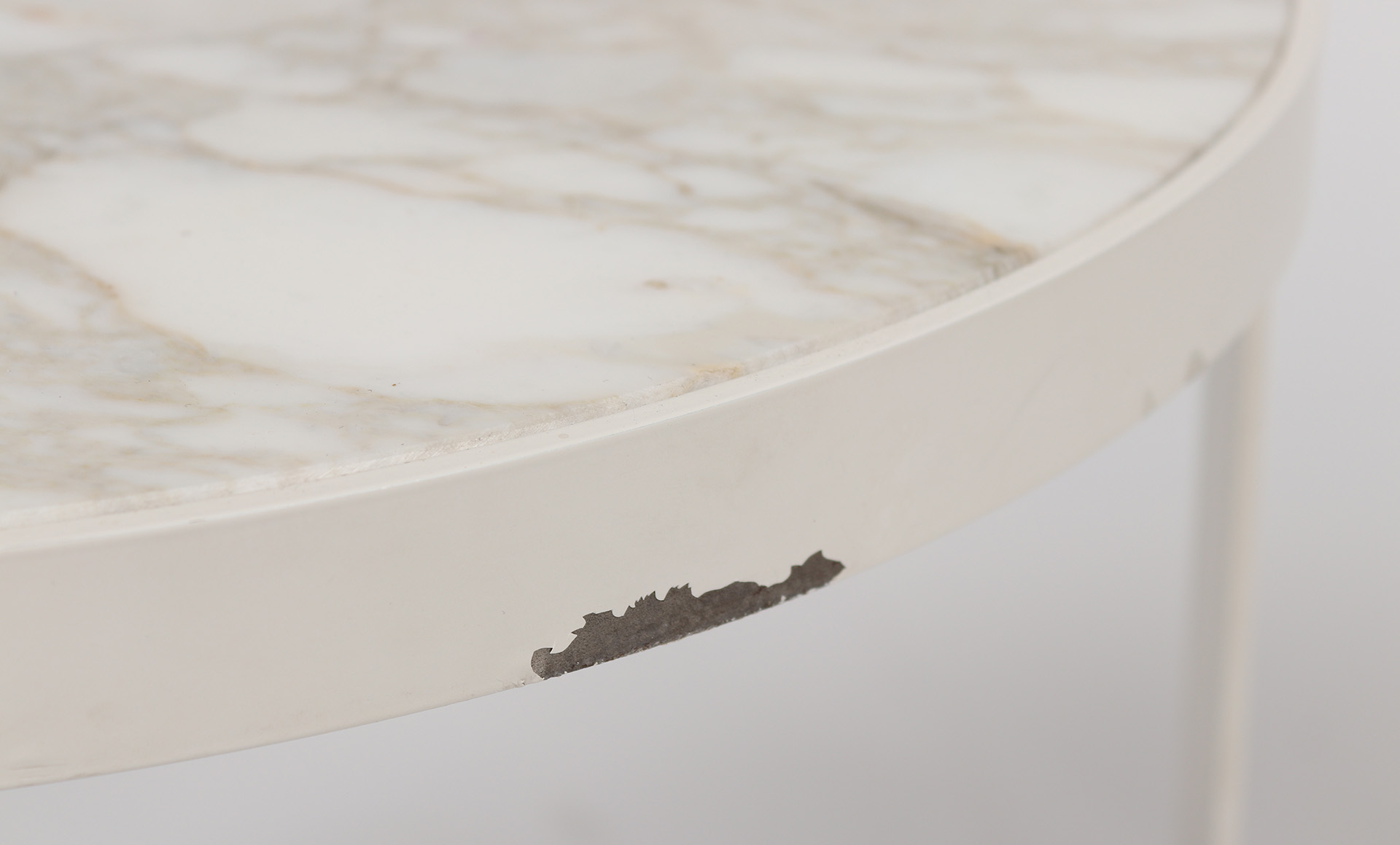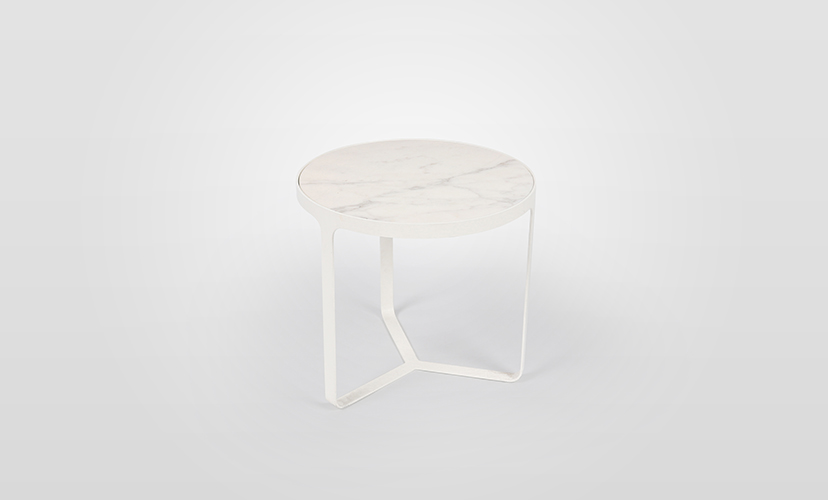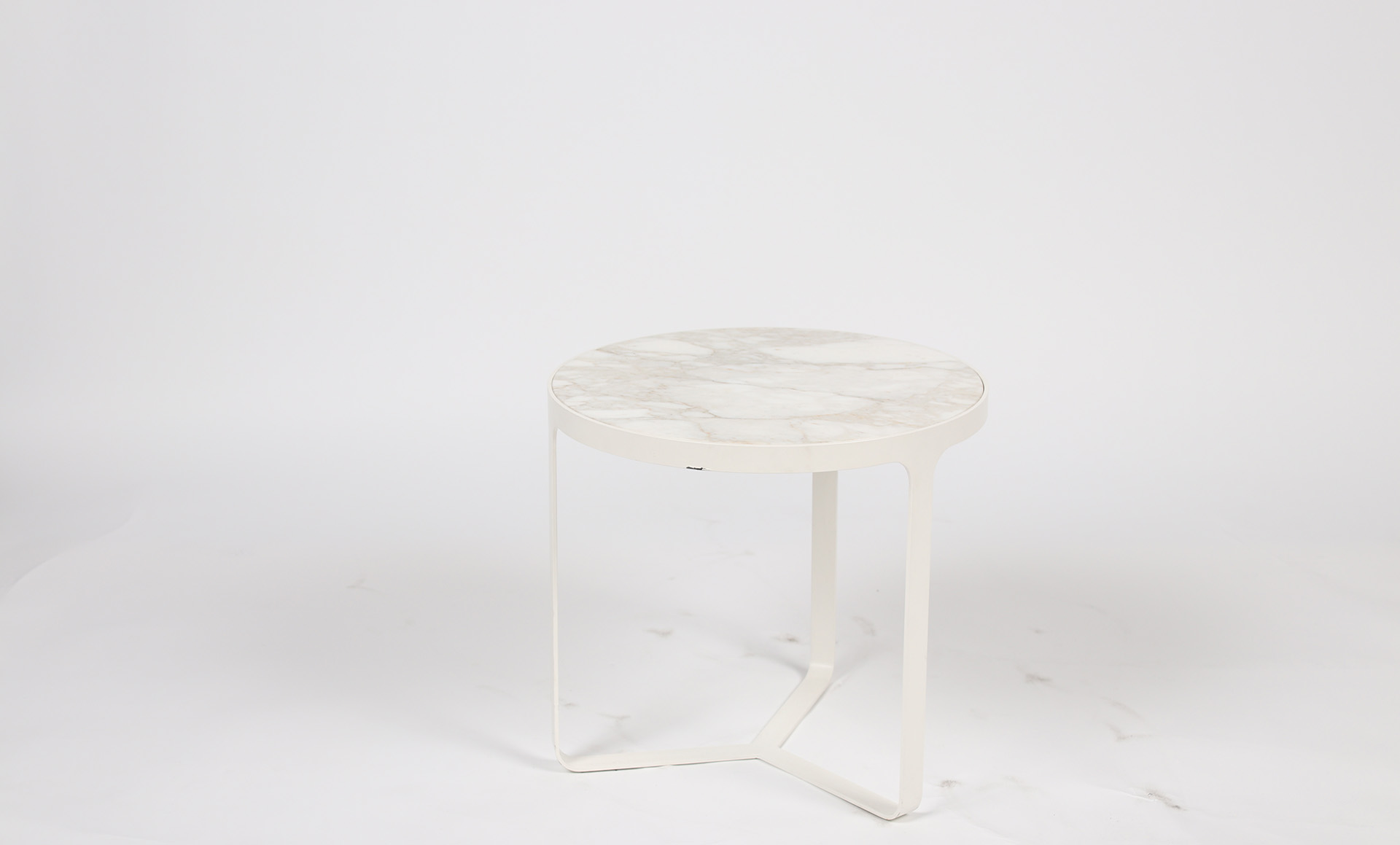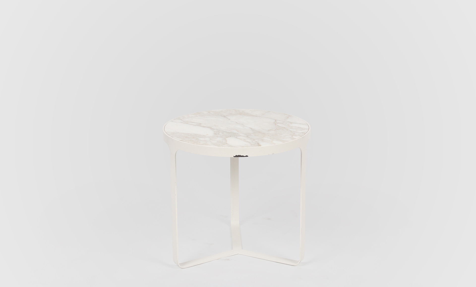 The Cage side table features an Italian Calacatta marble top a with the base in mild steel and finished white powder coat.